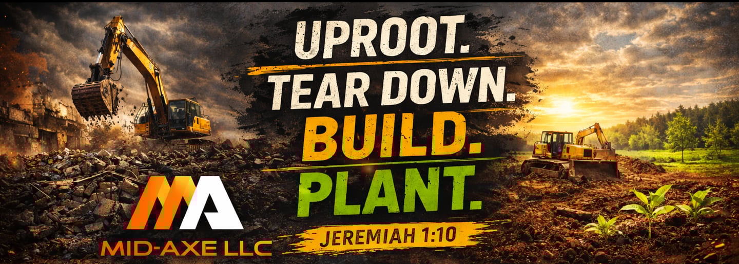 This verse captures the transformation that happens on every job site. Before something new can be built, the land must first be cleared and prepared. At Mid-Axe LLC, we take pride in being part of that process — helping lay the groundwork for what comes next.